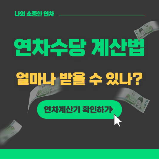 오늘 연차수당 계산방법과 유급휴가 발생 기준, 근로기간별 연차 개수와 자주 묻는 질문에 대해 알려드리고, 마지막에는 숫자만 입력하면 가능한 연차수당 계산기도 알려드릴 테니 시간 없으신 분들은 계산기를 통해 빠르게 확인하세요