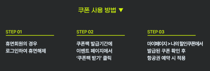 - 휴면해제하여 이벤트 페이지에서 쿠폰팩을 받고 항공권을 예약할 때 적용하면 됩니다