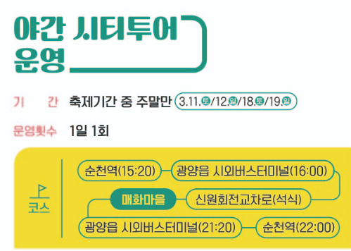 광양 매화축제기간 중 주말에는 야간시티투어에 참가할 수 있습니다