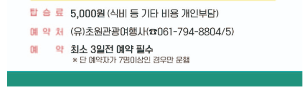 투어 3일 전까지 유선으로(초원관광여행사 061-794-8804~5) 예약해야 하며