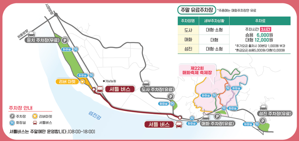 광양 매화축제를 방문하시는 분들은 주변에 총 4곳의 주차장이 있습니다