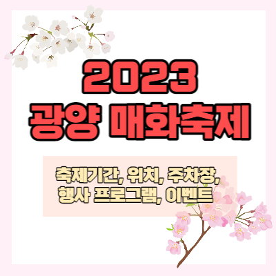 오늘은 2023년 광양매화축제 기간, 주차장, 프로그램과 무려 500만원 상당의 황금매화를 받을 수 있는 이벤트까지 모두 소개해드리겠습니다!