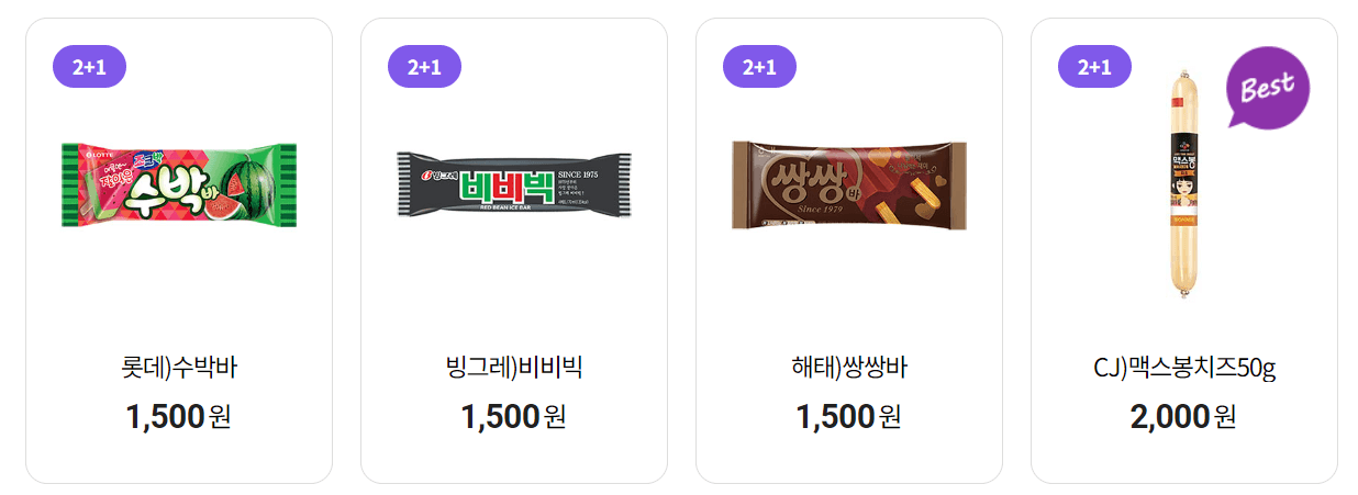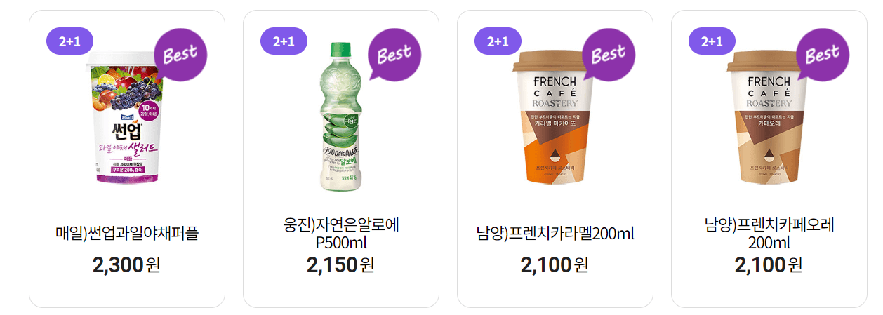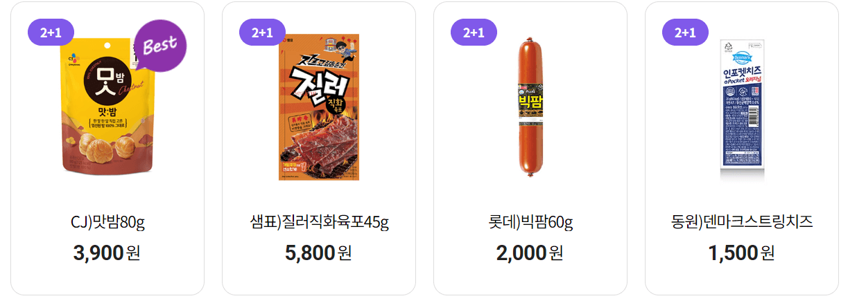 씨유 2+1은 1+1보단 가격 메리트가 조금 떨어지지만, 그래도 더 고급진 상품이 많이 있습니다. 나뚜루 녹차맛 아이스크림, 끌레도르 아이스크림, 샘표 질러 직화 육포, CJ 맛밤 등 평소 조금 부담스러운 가격대였더라도 이번 7월 행사를 이용하시면 좀 더 저렴하게 구매할 수 있으니 원하는 상품이 있다면 이번 행사를 이용해 보시기 바랍니다.