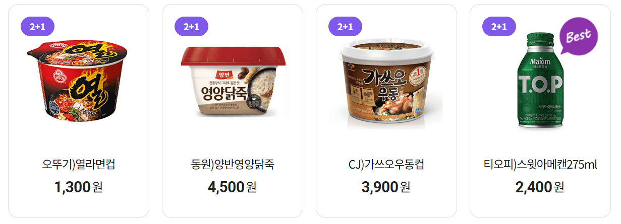 cu 1+1은 칫솔, 치약, 섬유, 페브리즈, 핸드워시 등 생필품이 많습니다. 뿐만 아니라 CJ 컵반 강된장 보리비빔밥, 직화볶음 짜장 덮밥과 오뚜기 영양닭죽, 컵밥 톡톡 김치알밥 등 간단하지만 든든하게 한 끼를 챙길 수 있는 제품도 있습니다. 이번 7월 cu 1+1 할인 항목은 아래에서 모두 확인할 수 있으니 꼭 확인하셔서 행사 가격 놓치지 않고 이용하시기 바랍니다.