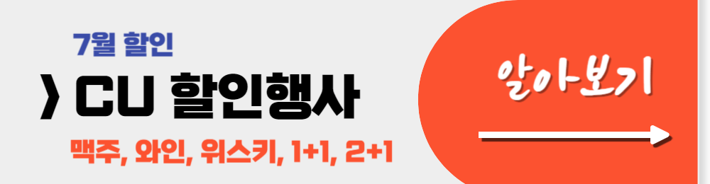 cu 7월 행사를 기다리시는 분들 많으셨죠? 오늘 씨유 7월 맥주 행사, 와인 행사, cu 1+1, cu 2+1 등 모든 걸 정리해 드릴 테니 cu 편의점에서 구매할 게 있으신 분들은 오늘 포스팅 참고하셔서 저렴하게 구매하시기 바랍니다.