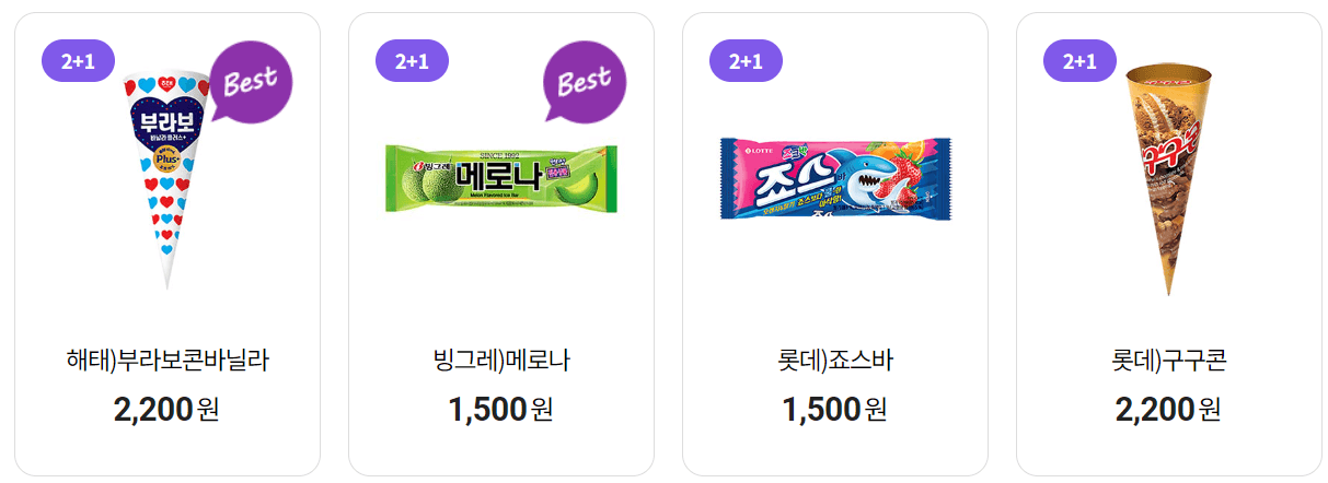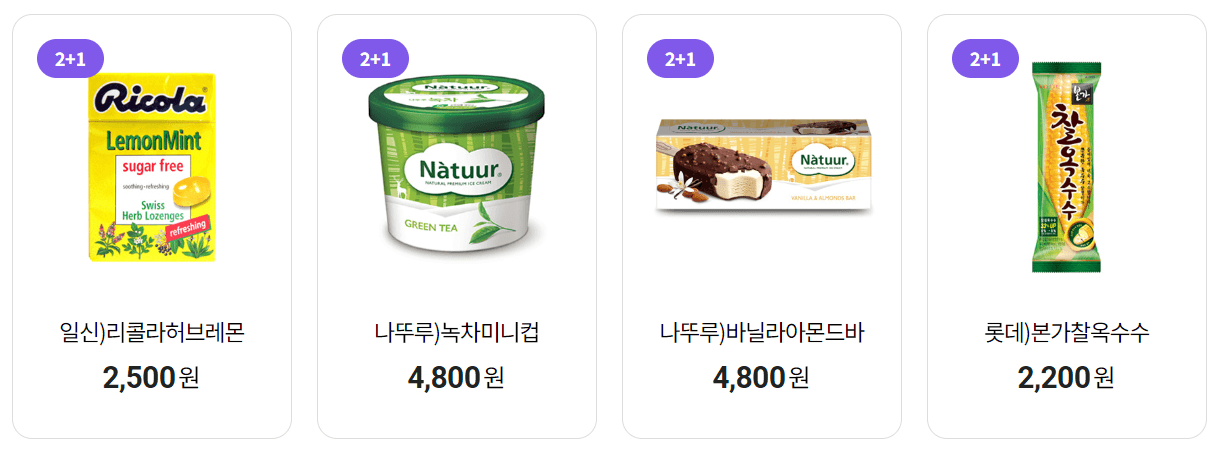 씨유 2+1은 1+1보단 가격 메리트가 조금 떨어지지만, 그래도 더 고급진 상품이 많이 있습니다. 나뚜루 녹차맛 아이스크림, 끌레도르 아이스크림, 샘표 질러 직화 육포, CJ 맛밤 등 평소 조금 부담스러운 가격대였더라도 이번 7월 행사를 이용하시면 좀 더 저렴하게 구매할 수 있으니 원하는 상품이 있다면 이번 행사를 이용해 보시기 바랍니다.